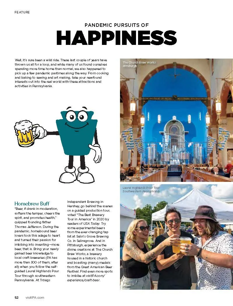 As the birthplace of the nation, the Keystone State is the place where “life, liberty and the pursuit of happiness” comes to life. We explored the many ways people explored creativity, fun and happiness during the pandemic (as illustrated by these “keystone” caricatures) and where people can explore their newfound pastimes when they return to Pennsylvania for vacation.